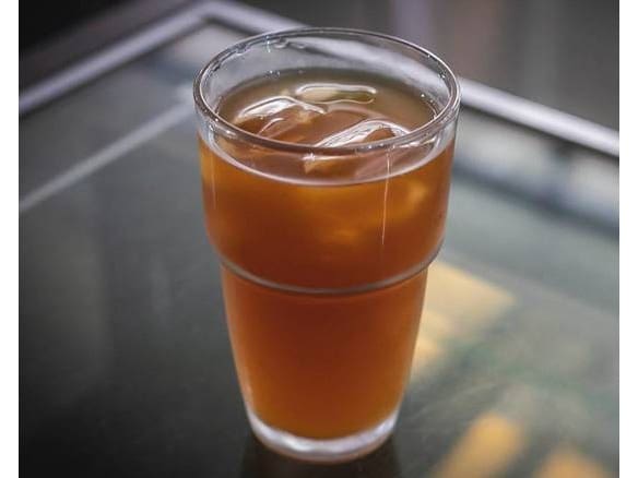 Nossa cold brew harmonizada com suco de laranja integral e gelo.