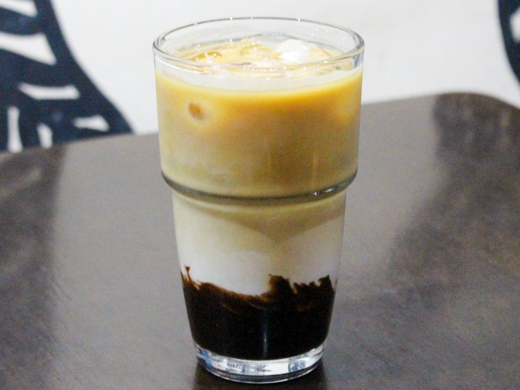 Espresso, leite, calda de chocolate e gelo. 350 ml