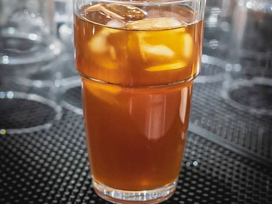 Delicioso e refrescante, nossa receita da casa de chá (feito de Mate torra alta e tostado), bem gelado, podendo acrescentar syrup de frutas a sua escolha. Nosso chá não tem açucar. Caso queira saborizar, o syrup contém uma quatidade baixa de açúcar.350 ml