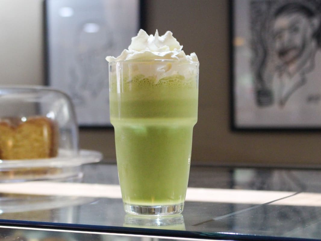 Leite, matcha, frappease de baunilha e chantilly. 350 ml